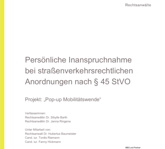 In Straßenverkehrsbehörden gibt es immer wieder Sorgen und Unsicherheiten, aufgrund von verkehrsrechtlichen Anordnungen insbesondere im Falle von Unfällen mit Verletzten oder Getöteten persönlich zivil- oder strafrechtlich haftbar zu sein. Ein Gutachten der Kanzlei BBG aus Bremen im Auftrag der DUH stellt jetzt klar, „Dass kein nennenswertes persönliches Haftungsrisiko besteht,