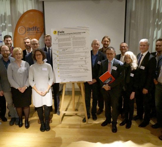 Am 13. November 2018 hat die AGFK MV ihr Initiativ-Papier "Sieben Ziele für guten und sicheren Radverkehr in MV" vorgestellt. Die Vorstellung erfolgte im Rahmen eines Parlamentarischen Abends im Schweriner Schleswig-Holstein-Haus, zusammen mit dem Tourismusverband Mecklenburg-Vorpommern und dem ADFC Landesverband.